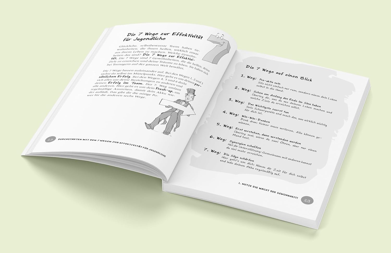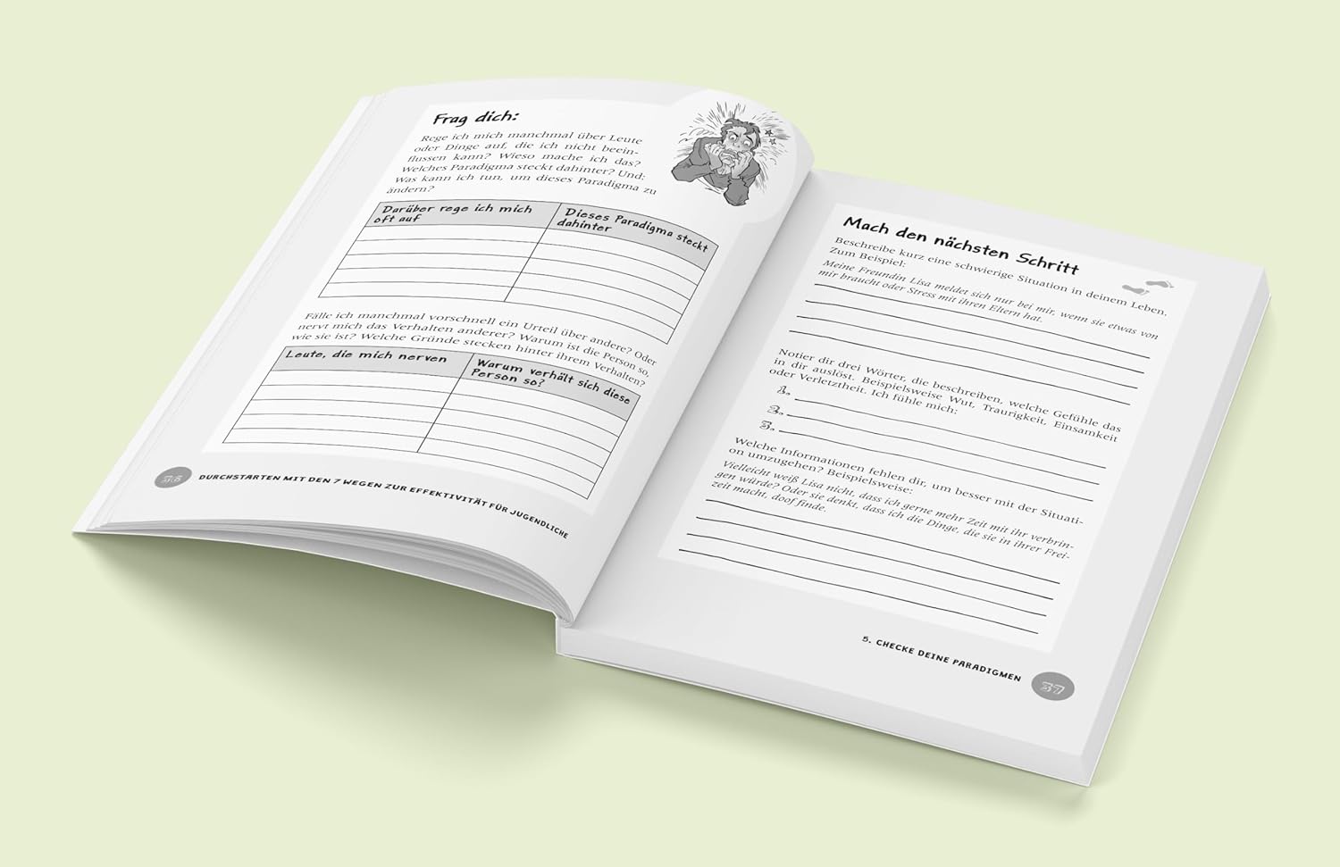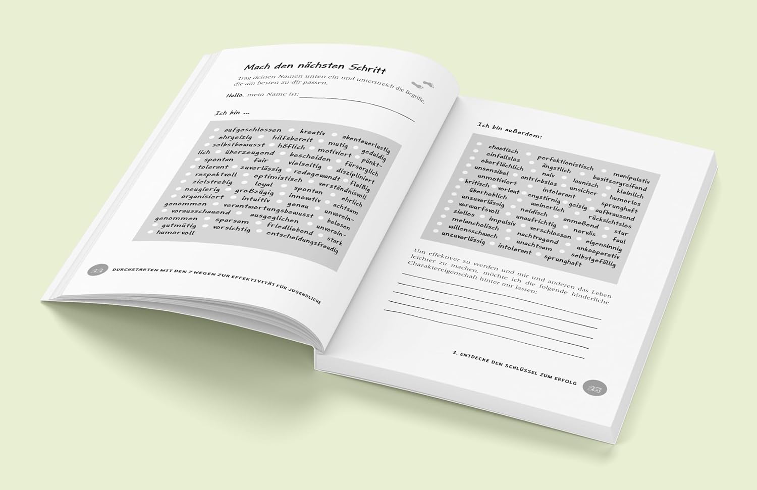 Kurzum: Das Workbook ist das beste Mittel gegen miese Noten, Ärger in der Schule, Gruppendruck, Zoff mit den Eltern, Selbstzweifel, Planlosigkeit und Zukunftssorgen. Es funktioniert auch, wenn du „Die 7 Weg zur Effektivität für Jugendliche“ (noch) nicht kennst. Also, wirf gleich einmal einen Blick rein und leg los.