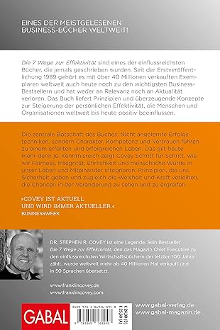 Das Buch liefert Prinzipien und überzeugende Konzepte zur Steigerung der persönlichen Effektivität, die Menschen und Organisationen weltweit bis heute positiv beeinflussen. Die zentrale Botschaft des Buches: Nicht angelernte Erfolgstechniken, sondern Charakter, Kompetenz und Vertrauen führen zu einem erfüllten und erfolgreichen Leben. Das gilt in unserer heutigen volatilen Lebens- und Arbeitswelt mehr denn je.